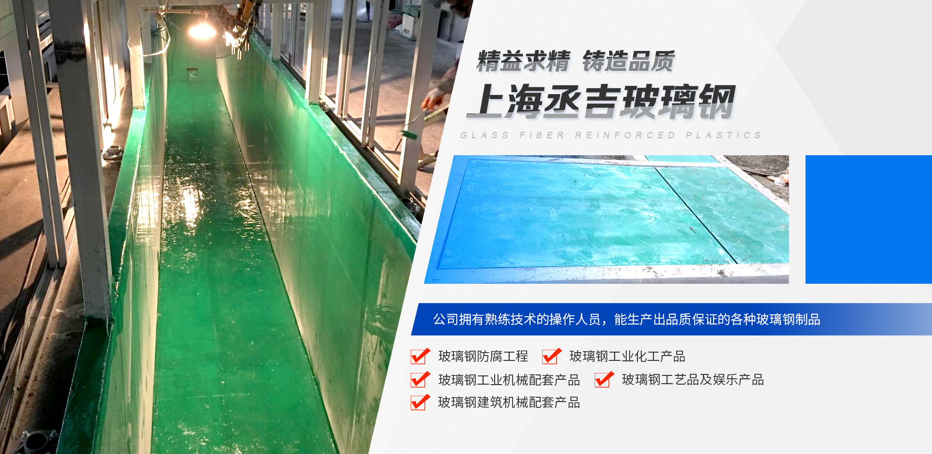 上海丞吉玻璃鋼有限公司,是一家集合玻璃鋼制品設計、制作、現場組織施工、研發、銷售、網購,為一體的綜合型服務公司。公司多年來專業銷售與生產大型雕塑景觀、大型兒童游樂設施、冷卻塔、槽罐、玻璃鋼船、室內裝飾物、汽車護甲保險杠大包圍及底盤、化工烘料托盤、防腐工程、風管、水槽、化糞池、花盆,垃圾桶、建筑材料等各種玻璃鋼產品(FRP),公司配備專業設計師(兼職),為廣大客戶設計模具、查看圖紙、打樣。并配備具有熟練技術的操作人員,生產出品質保證的各種玻璃鋼制品。